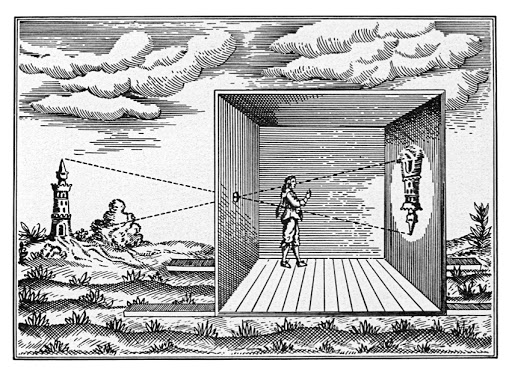 La chambre noire ou camera obscura est un dispositif connu vraisemblablement depuis l’Antiquité (300 ans avant JC), mais il a été étudié et répandu plus tard, entre autres par Léonard de Vinci au XVIe siècle.